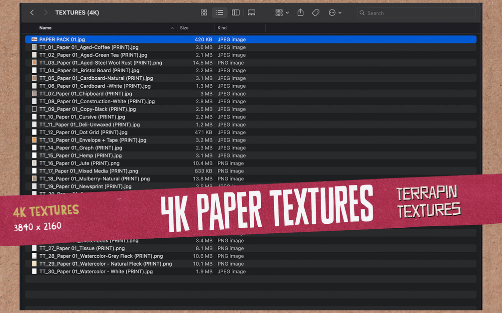 - (30) 4K looping animations of each texture (mp4)